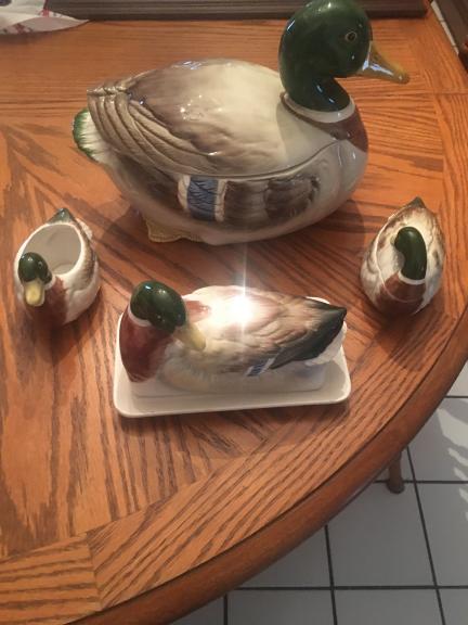 4 piece duck set cookie jar, butter dish, sugar,creamer