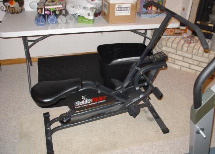 Offering a Health Rider. This strider machine works your entire body by targeting both lower and upper body muscles. Its wide, rotating, 2-position handlebars add to its versatility and will allow you to work even more muscle groups. The exercise strider features an oversized adjustable seat. The smooth, quiet linkage system on the HealthRider Fitness Strider ensures a quiet workout. The LCD monitor keeps track of your reps so you can make sure that you are reaching your exercise goals.