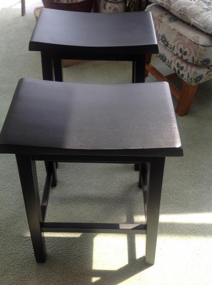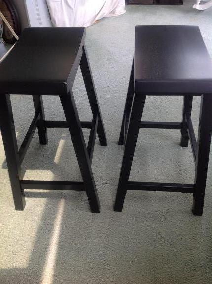 I have FOUR New black barstools from Target!! They have a rectangular seat, which is contoured & are 24" (h). I am asking $30 per stool...let me know what questions you have.