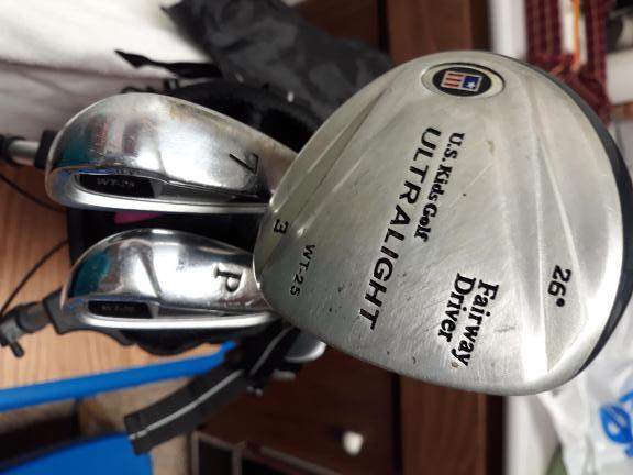 US Kids' Golf set. Three clubs (ultralight driver, 7 iron and pitching wedge) and bag.