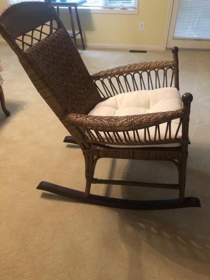 Whicker rocking chair with cushion. Medium brown