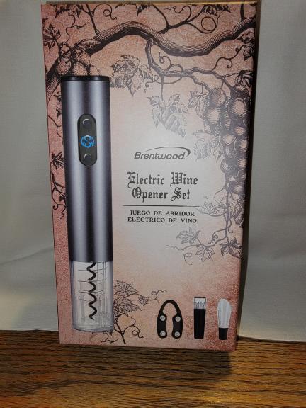 Electric Wine Opener Set includes: Electric Wine Opener, Fresh Seal Vacuum Stopper, 4 Blade Foil Cutter, Flavor Enhancing Aerator Pourer. Own one myself excellent item.