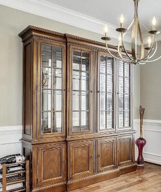 What do you do with all of those platters, plates, bowls, etc.? Let's not forget our abundance of wine glasses. If you host parties and want to display all of your pretty pieces, this china cabinet holds an immense amount of items. Go all out and create a beautiful table and at the end of the night, put it all away in one place. Measures 85.5 inches high, 72 inches deep and 20 inches deep.