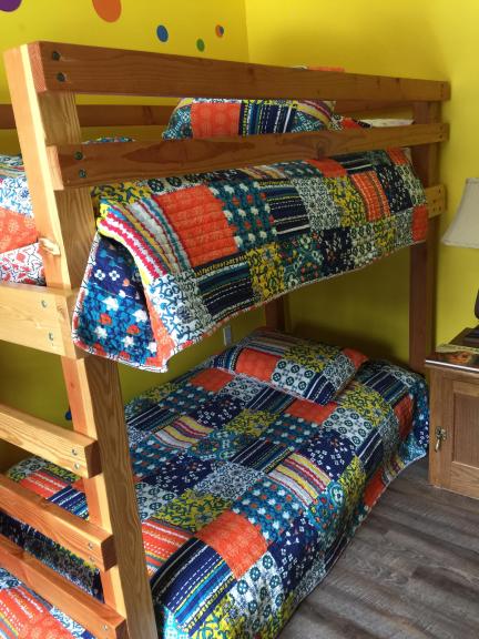 Custom made, sturdy, mattresses, and all bedding included. Clean used only for grandchildren’s visits.