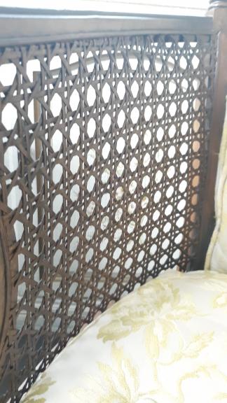Classic antique pair of walnut & caned sided italian formal side chairs. Minor imperfections, open to negotiation.