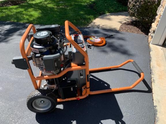This Gen was bought and never used elect start from remote panel works upright as well stowable handle for easier use and movement. May need new bat