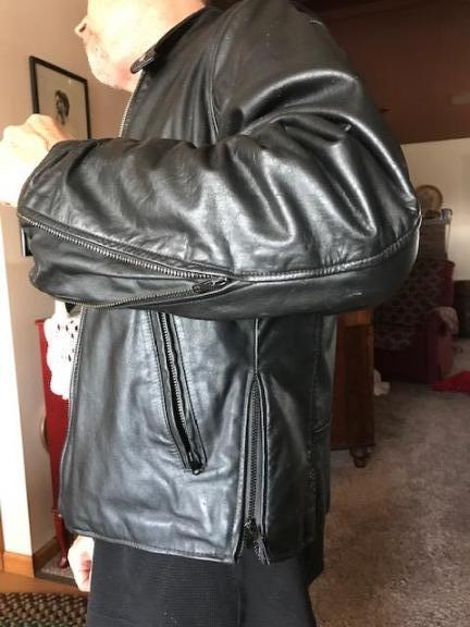 Black, Leather, lined, motorcycle jacket, size 40, Excellent condition. $40 call 716--695-9145