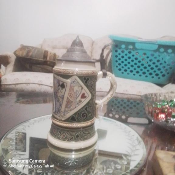 Antique hand of cards beer stien , 1255 Germany 0,5L antique almost new condition