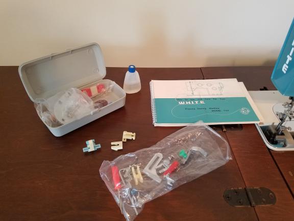 White Sewing Machine and Accessories