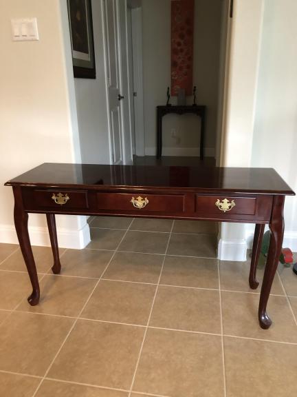Nice table for bedroom or elsewhere. Middle drawer open for storage