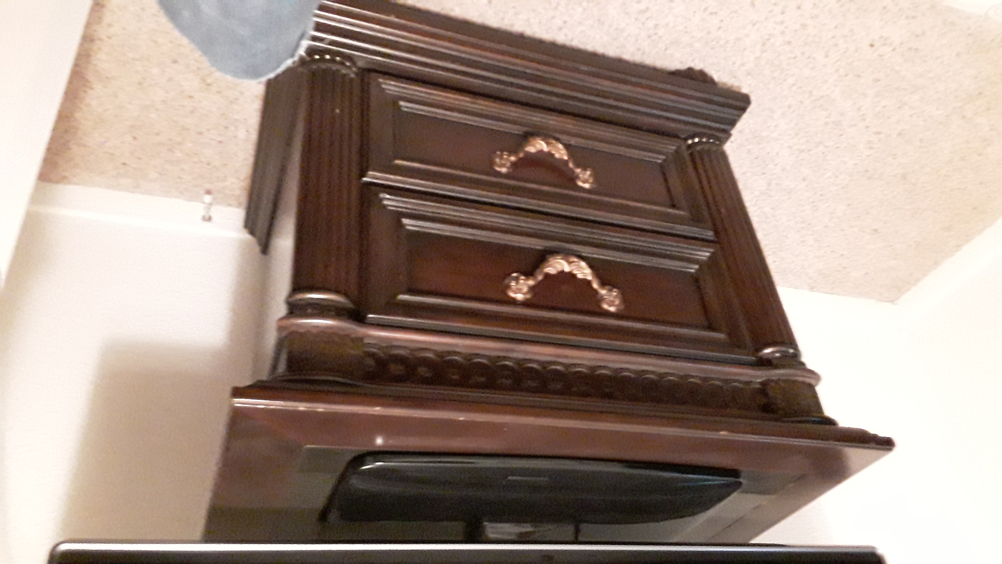 Real wood and includes Headboard, footboard, 2 nightstands and dresser