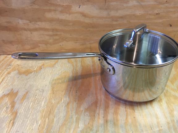 This like new item brings 3 QUART capacity in Stainless Steel bolstered by the conductivity and even cooking/heating of a Copper Core! Lid included!
