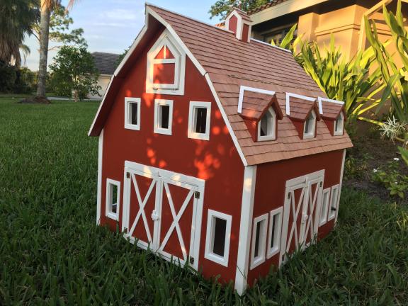 Meticulously handcrafted oversized toy barn made by skilled German woodworker. Collector series signed and numbered. Each one is handmade, so no two are alike. Two weeks to construct and paint. Easy access through double roof dormer sections and double barn doors and all four sides. The hayloft door also opens. Twin inside corals. Weighs 51 lbs. Swivel Turn-table not included. Shipping not included. Allow 3-4 weeks turnaround delivery time.