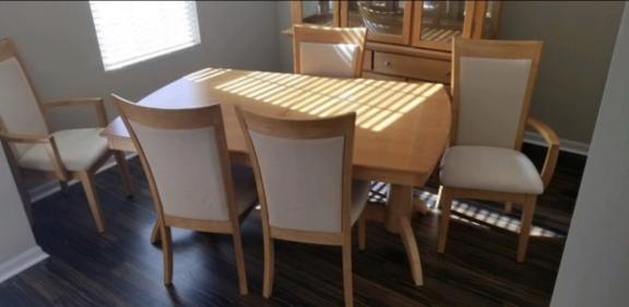 Beautiful dining room with china cabinet. If you don’t like the China cabinet that can be taken down and then it’s a buffet table.