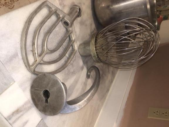 This is a countertop model that has been mounted on a removable wooden stand, Model No. SRM20. It's in good condition, used in a bakery. Stainless steel mixing bowl, paddle, whip and dough hook are all included.