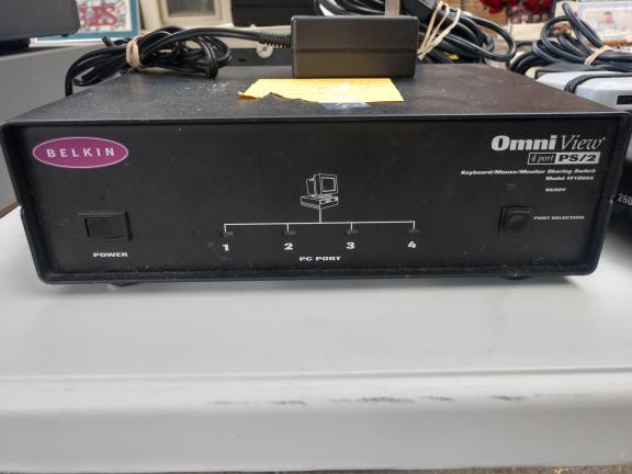 Belkin Omniview 4 Port Ps/2 Key Board, Mouse and Monitor Ps/2 Kvm Switch Model # F1D06606 with Power Supply