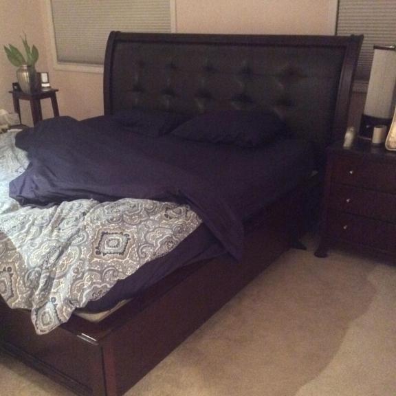 King size bed frame with mattress foundations,dresser, night stand, & bedroom night lamp