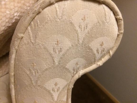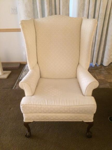 cream color with lion claw legs. nothing wrong really nice set has been treated with stain protected and has always been covered. not even really been sat on just special holidays. i am just moving and selling all. will sell separate