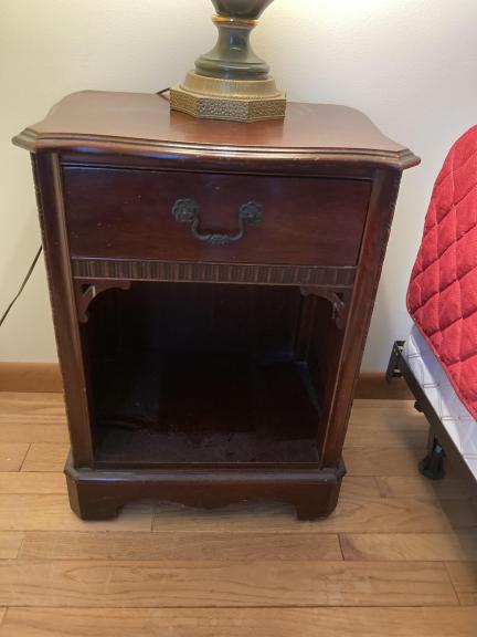 Two 100 year old mahogany dressers, chair tea cart and night table.