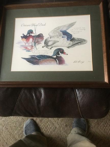 Bob Barry signed Ontario wood Duck Picture in frame