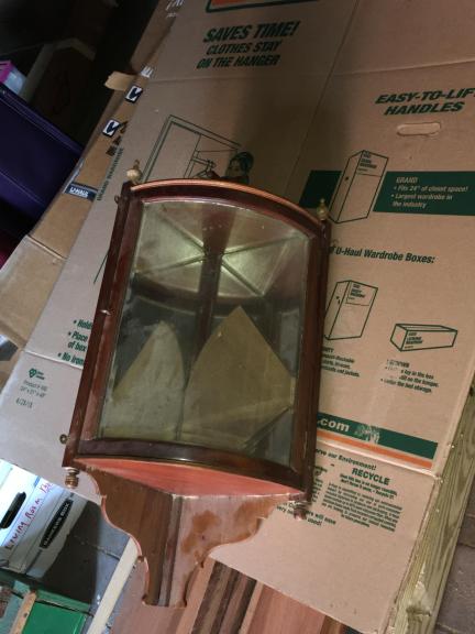 Antique corner wall cabinet with beveled glass About 36 inches high, 24 inches wide and 16 inches deep