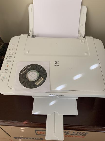 Wireless printer, scanner, copier. Pixma MG3020. Works great. Comes with disk & instructions. Can print from wireless phone, tablet, laptop or desktop. Black/white or color.