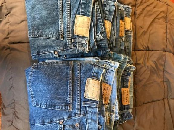 9 pair of men's 34 x 32 Arizona jeans. Asking $5/pair. Can buy 1 pair or all.