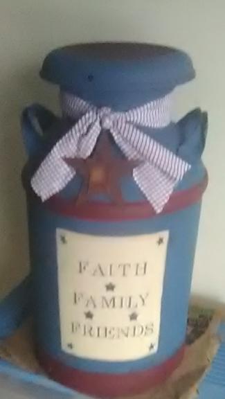 Painted/Decorated primitive/americana with tin stars antique milk can