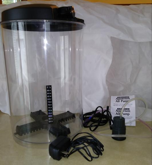 Covered Fish Aquarium used only about 6 Months. Very Nice and Like New Condition! Lights up with a large variety of colors, or no color at all. Tank included pump and power cord. Extras purchased are pictured and include heater, thermometer, net, ceramic ornanent, several (packs of) imitation decorative plants, 2 packs of glow in the dark stones, and gravel vacuum. We enjoyed this very much and the lid was nice because fish could not jump out, etc. Easy to clean! Runs Quietly. This would make a great gift or family item! This is a really good price for all of this, you would need to buy your own fish, food, and water conditioner. Great Starter Package! The neon, glow type fish look beautiful in this tank! Cash Only. Serious Inquiries Only Please. All Sales Final. May consider shipping if buyer pays me the shipping costs. Thank You!