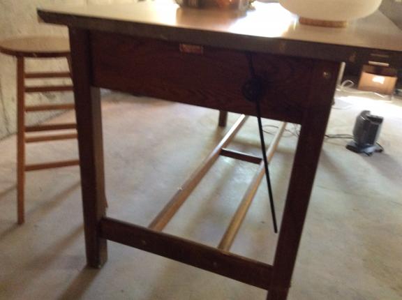 Vintage wooden Drafting Table made by Hamilton steel goods Co of Wisconsin. Table was acquired by us in 1975 but was acquired by the original owner in 1964.