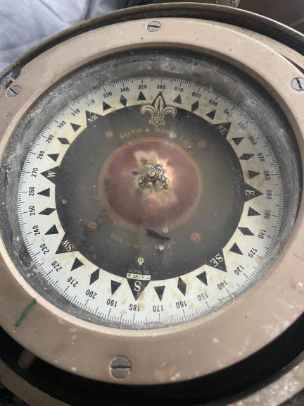 This is a vintage brass lifeboat binnacle with working kelvin&hughes compass,