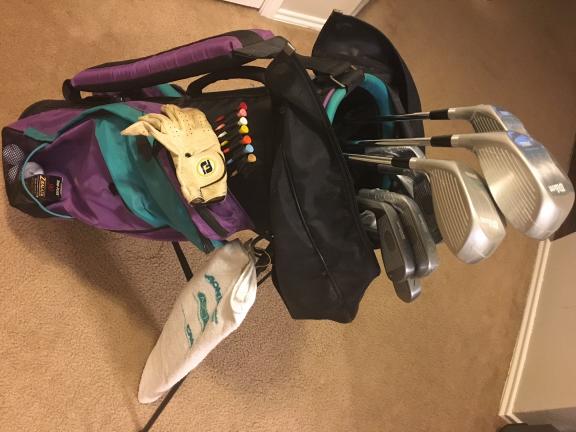 Only 2 clubs used. Starter golf club set - tees, balls, glove and towel included.