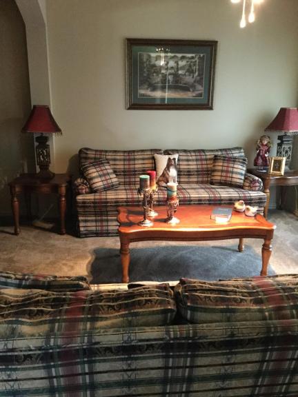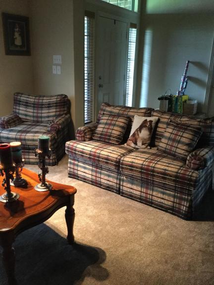 Couch,loveseat,chair,two end tables,one coffee table and two lamps